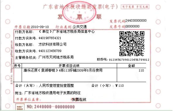 广东省新版电子发票票样